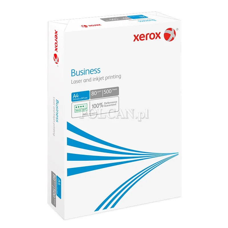 Papier klasy B. Xerox Business jest uniwersalnym papierem biurowym przeznaczonym do czarno - białych drukarek, kserokopiarek i drukarek atramentowych. Dzięki korzystnemu stosunkowi jakości do ceny może być stosowany do drukowania produkcyjnego oraz w małych biurach.