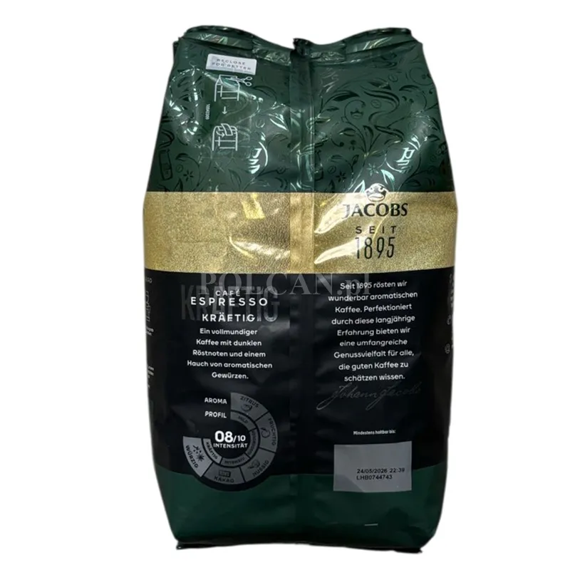 Kawa ziarnista Jacobs Espresso pozwoli Ci na przygotowanie doskonałej, intensywnej kawy o głębokim smaku i urzekającym aromacie. Jej mocny napar idealnie nadaje się do espresso, lungo, cappuccino czy flat white.
