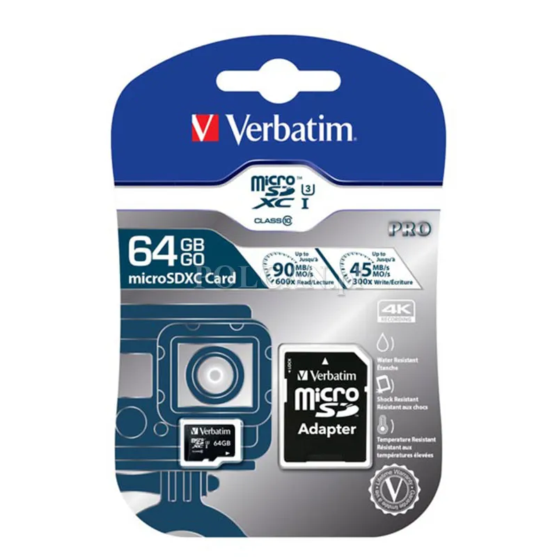 Karty pamięci Verbatim Pro microSD są odporne na wodę i wstrząsy; zestaw zawiera adapter microSD do SD.