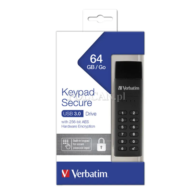 Verbatim pendrive Keypad Secure Dysk | USB 3.2 Gen 1 USB A | 64 GB | czarny
