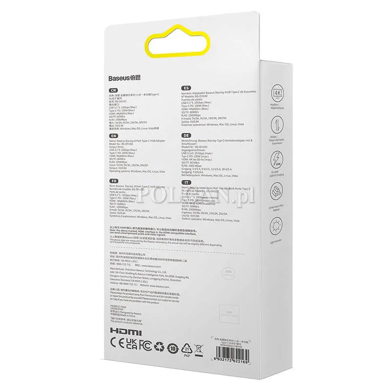 Ośmioportowy hub Baseus Doskonały ośmioportowy hub Baseus pozwoli Ci zwiększyć ilość portów w Twoim komputerze, czy laptopie. Zapewnia stałą i szybką transmisję danych, a dzięki temu, że został wykonany z wysokiej jakości materiałów, jest odporny na drobne uszkodzenia mechaniczne i zarysowania. Port micro USB służy do zasilania zewnętrznego dla urządzeń wymagających stabilniejszego i większego napięcia.
