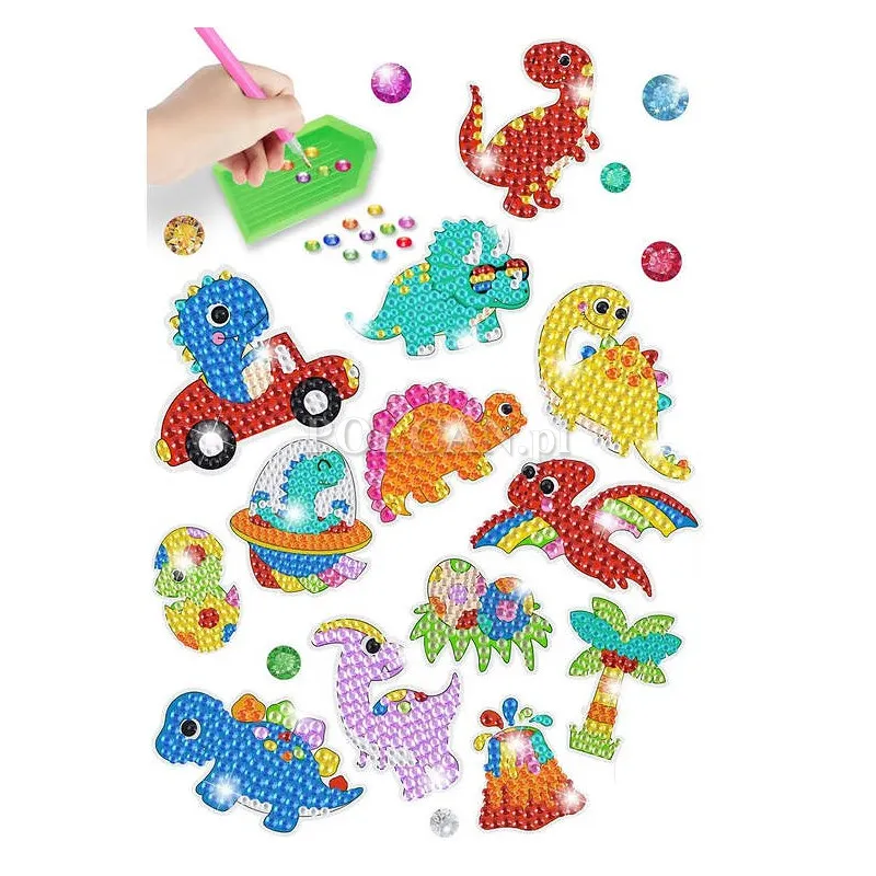 - Rozwija koncentrację i motorykę dzięki precyzyjnemu naklejaniu kryształków.