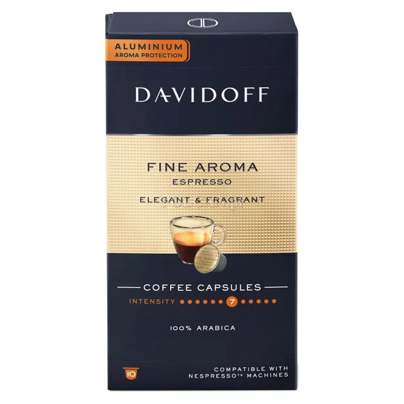 Odkryj wyrafinowany smak kawy Davidoff Fine Aroma, zamknięty w eleganckich kapsułkach Nespresso. Ta wyjątkowa mieszanka 100% ziaren Arabiki zachwyca delikatnym aromatem i subtelnym smakiem, idealnym dla miłośników łagodniejszych kawowych doznań.