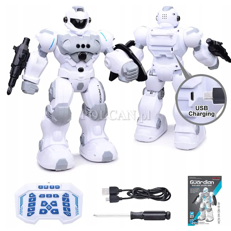 | Zawartość opakowania: | robot, pilot, kabel USB do ładowania, instrukcja obsługi, śrubokręt, osłona ochronna, nadajnik, 3 naboje |