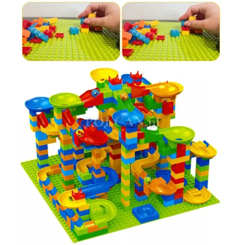 Klocki konstrukcyjne plastikowe – kreatywny zestaw XXL z torem kulkowym, 514 elementów