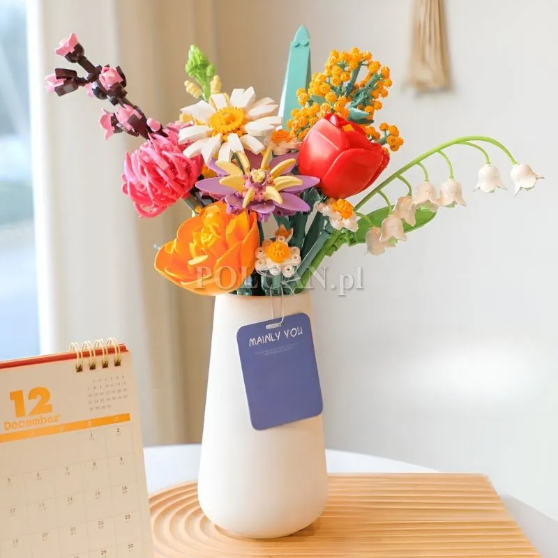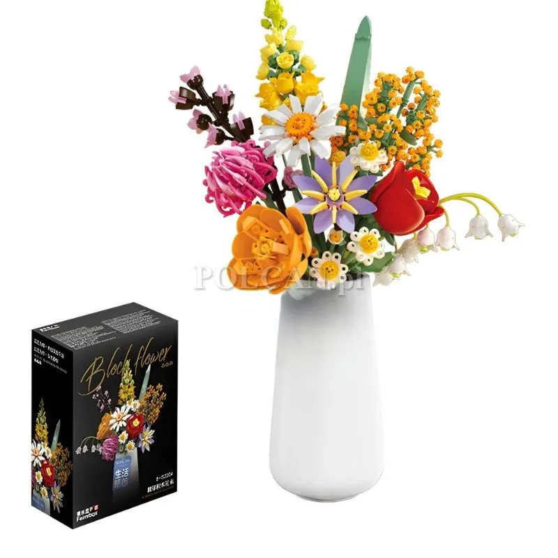 Stwórz niepowtarzalną kompozycję florystyczną, która nigdy nie zwiędnie! Ten kreatywny zestaw pozwala zbudować wielobarwny bukiet kwiatów z realistycznych klocków i umieścić go w eleganckim ceramicznym wazonie. Idealny na prezent lub jako ozdoba wnętrza, która doda stylu każdemu pomieszczeniu.