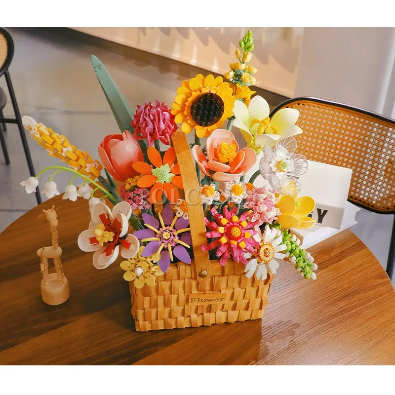 Kwiaty z klocków w koszu – Zestaw DIY – 1615 elementów