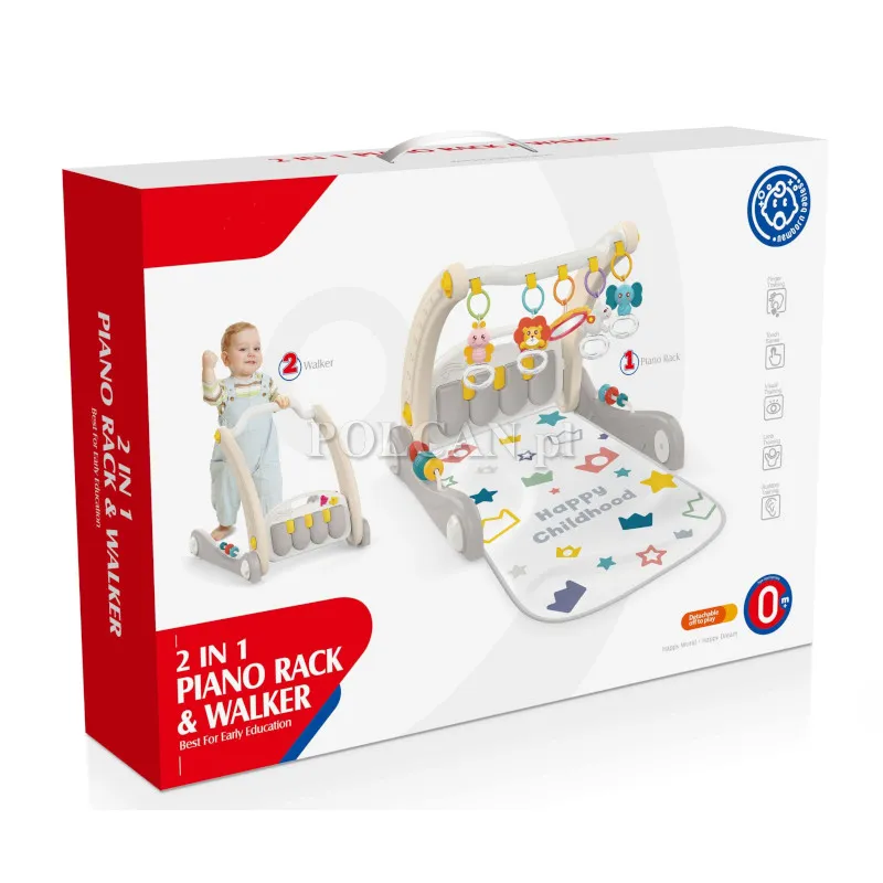Mata edukacyjna 2w1 z funkcją chodzika to innowacyjna zabawka zaprojektowana z myślą o wszechstronnym rozwoju dziecka – od pierwszych miesięcy życia aż do momentu stawiania pierwszych kroków. Łączy w sobie matę edukacyjną z pianinkiem oraz stabilny chodzik, wspierając rozwój ruchowy, sensoryczny i poznawczy malucha.