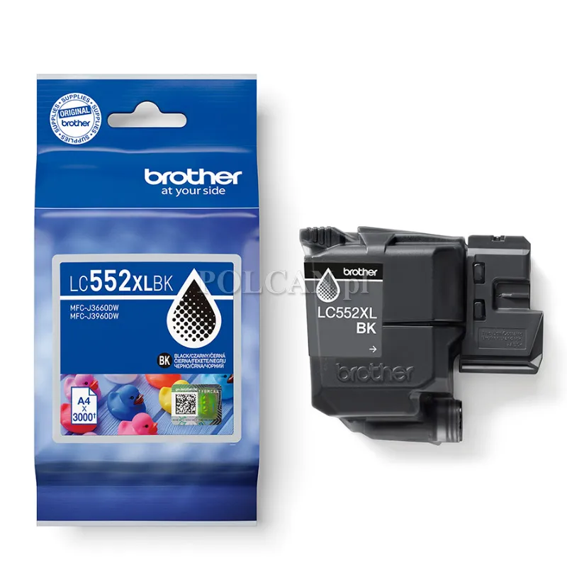Oryginalny czarny wkład atramentowy Brother LC552XLBK o wysokiej wydajności.