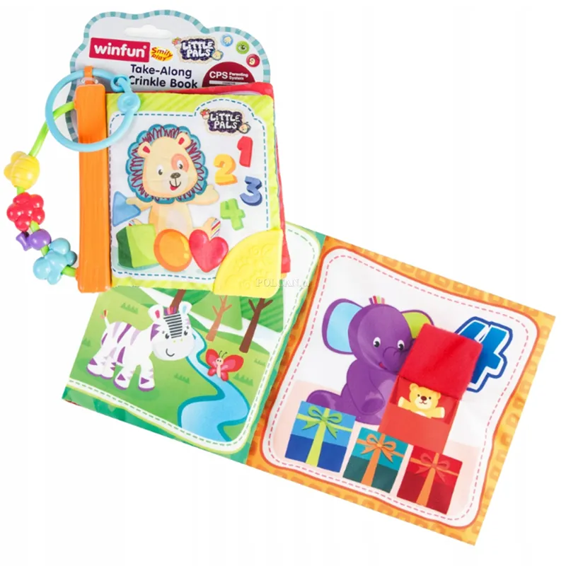 - Obrotowe koraliki i szeleszczące elementy zwiększają atrakcyjność książeczki.