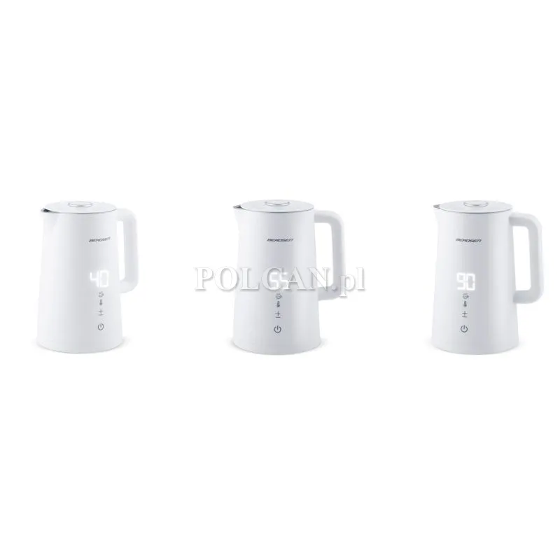 - Dotykowy panel sterowania z wyświetlaczem temperatury umożliwia wygodne zarządzanie funkcjami czajnika.