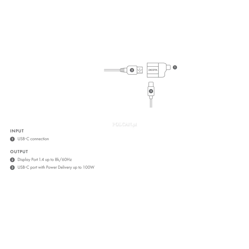 | Dodatkowe informacje: | Złącza #1 USB Typ C Męska USB Typ C Żeńska Złącza #2 DisplayPort Żeńska |
