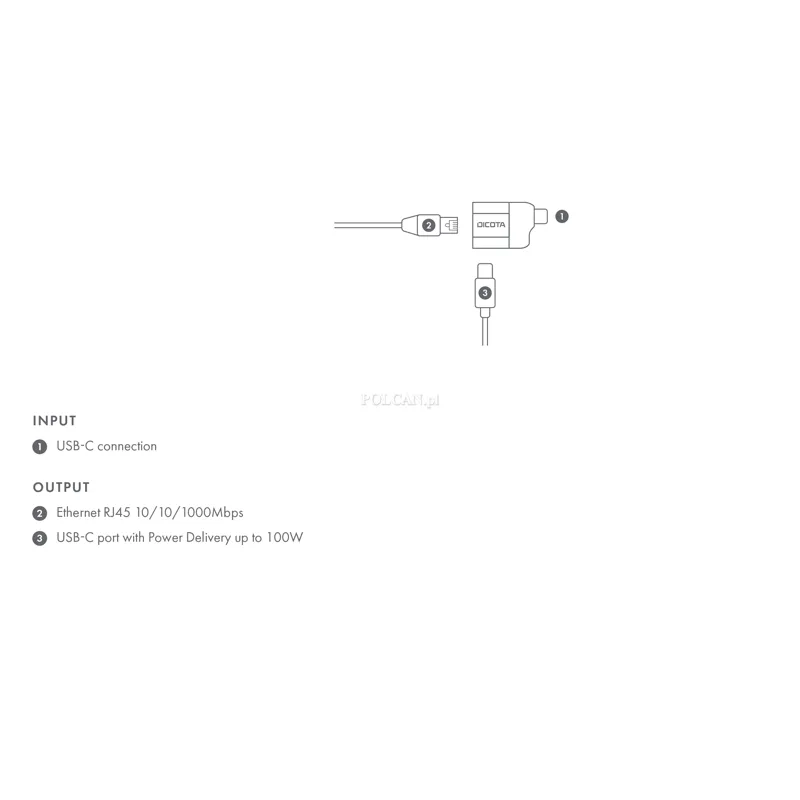 Dicota adapter USB-C to Ethernet Mini Adapter with PD (100W)
