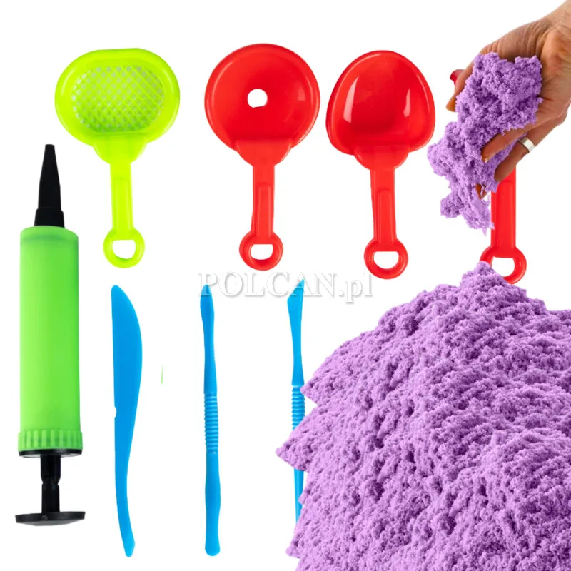 - Materiał: Nietoksyczny piasek kinetyczny i tworzywo sztuczne (akcesoria)