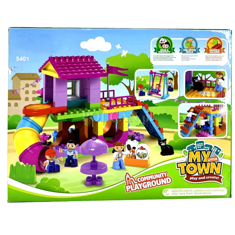 Plac zabaw ze zjeżdżalnią to rozbudowany zestaw konstrukcyjny, który przenosi dzieci w świat nieograniczonej zabawy. 93 elementy pozwalają stworzyć domek z balkonem, dwie zjeżdżalnie, huśtawkę oraz wiele innych atrakcji, które rozwijają wyobraźnię, zdolności manualne i zachęcają do aktywnej zabawy w grupie.