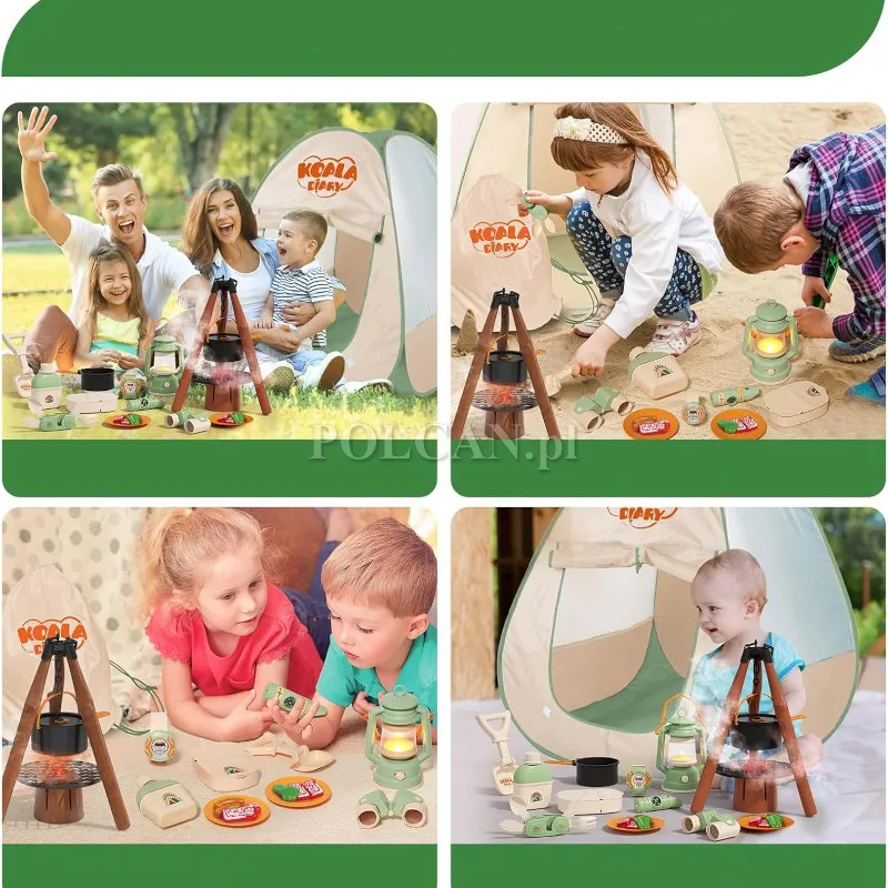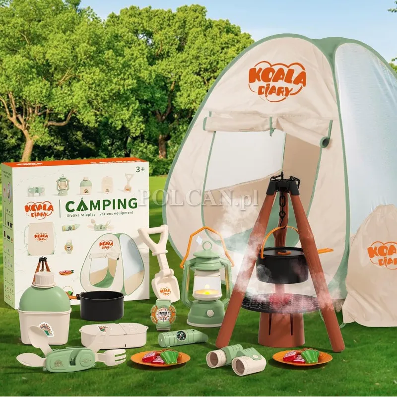 Realistyczny zestaw campingowy dla dzieci od 3. roku życia, który łączy edukację, przygodę i kreatywność. Dzięki rozkładanemu namiotowi, palenisku z dymem oraz licznym akcesoriom, dziecko może poczuć się jak prawdziwy odkrywca w terenie.
